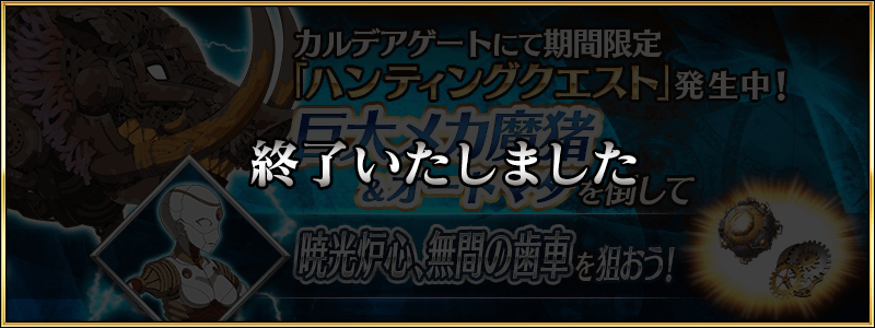 開催期間中、特定のエネミーを対象としたハンティングクエストが順番にカルデアゲートに出現します。