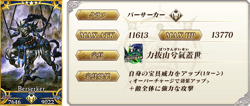 ※上記の「★5(SSR)項羽」のセイントグラフは霊基再臨第2段階のものです。