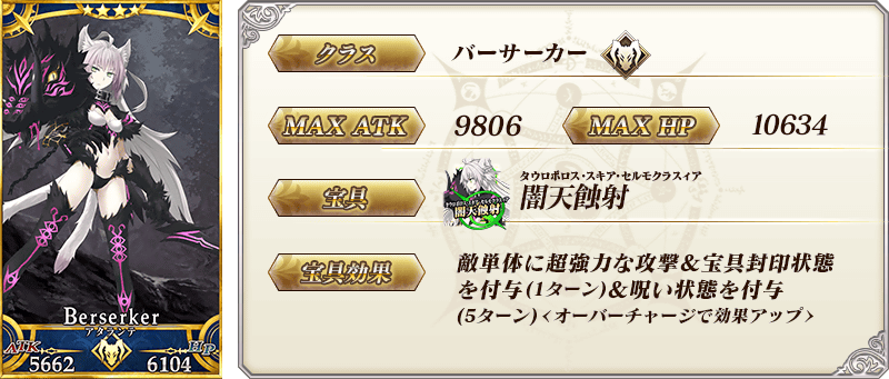 ※上記の「★4(SR)アタランテ〔オルタ〕」のセイントグラフは霊基再臨第2段階のものです。