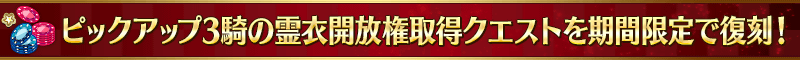 本イベントでは特定のイベントクエストをクリアすると、報酬として上記の霊衣開放権を入手できます。