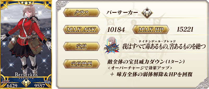 ※上記の「★5(SSR)ナイチンゲール(バーサーカー)」のイラストは霊基再臨第2段階のものです。
