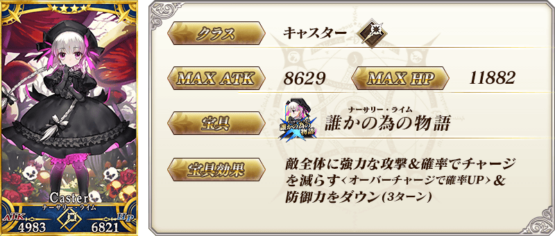 ※上記の「★4(SR)ナーサリー・ライム」のセイントグラフは霊基再臨第2段階のものです。
