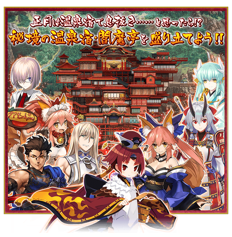 本イベントでは、イベントアイテムを集め、秘境の温泉宿『閻魔亭』を改築していくことに!