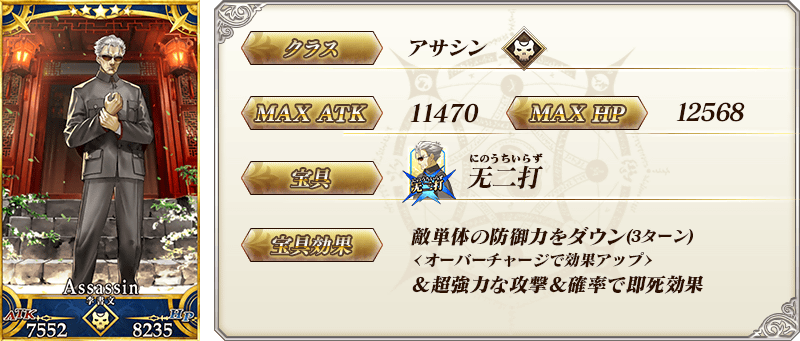 ※上記の「★5(SSR)李書文(アサシン)」のイラストは霊基再臨第2段階のものです。
