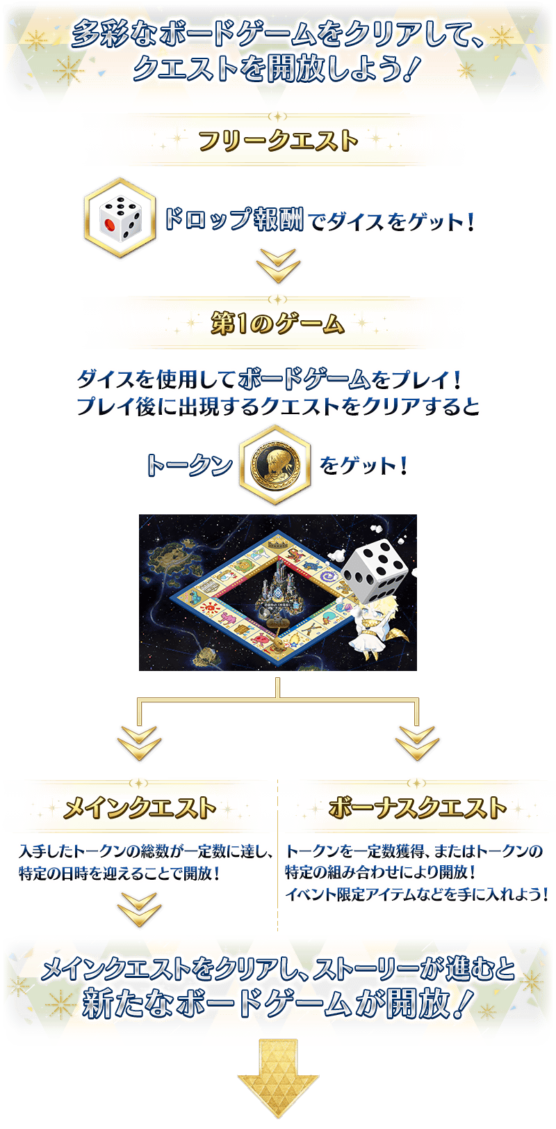 本イベントでは、複数のボードゲームを模したクエストに挑むことで、メインクエストが開放されていきます。
