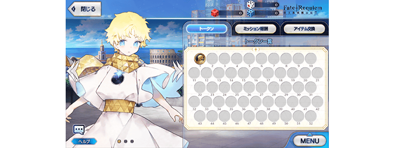 コラボレーションイベント「『Fate/Requiem』盤上遊戯黙示録」で最初にプレイすることができる第1のゲーム「ガッポリー」。