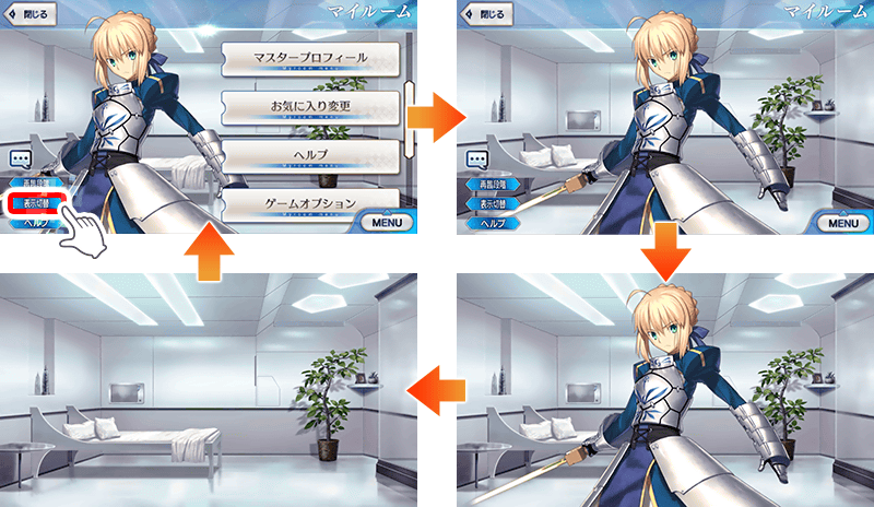 これにより、マイルーム背景でUIがない状態でサーヴァントのスクリーンショットを撮れるようになりました。