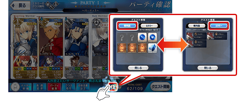 ※クエストクリア報酬、戦利品、マスターEXP、魔術礼装EXP、絆ポイントを獲得できるのは初回クリア時のみです。