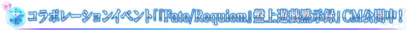 「Fate/Grand Order」公式サイト内トップページおよびギャラリーにて、コラボレーションイベント「『Fate/Requiem』盤上遊戯黙示録」のTVCMを公開しております。あわせてご確認ください。