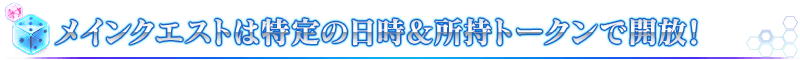 ストーリーが進行するメインクエストは、下記のスケジュールおよび、その時点で一定数のトークンを所持していることで開放されます。