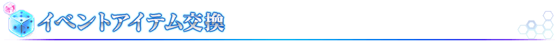 イベントアイテムは、ターミナル画面右上の「イベント報酬」ボタンをタッチすると表示される「イベントアイテム交換」画面より、以下のアイテムと交換できます。