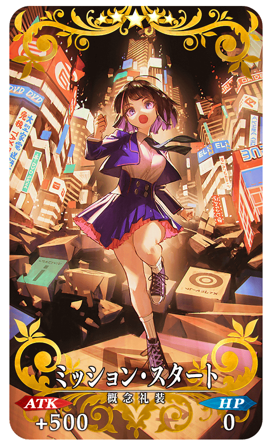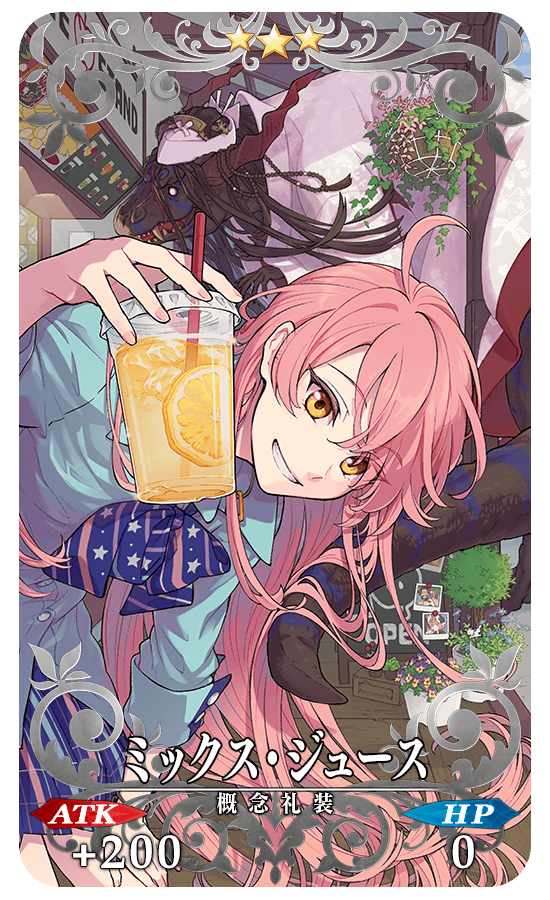 また、下記の期間限定概念礼装もピックアップいたします! ・★5(SSR)ミッション・スタート ・★4(SR)トーナメント・スター ・★3(R)ミックス・ジュース 上記3種の概念礼装を装備することで、コラボレーションイベント「『Fate/Requiem』盤上遊戯黙示録」におけるイベントアイテムのドロップ獲得数がアップします。