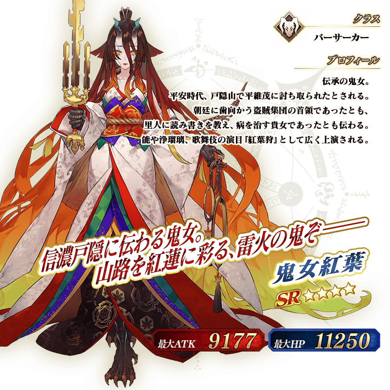 ※上記の「★4(SR)鬼女紅葉」のセイントグラフは霊基再臨第3段階のものです。