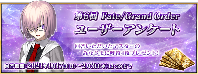 ◆第6回 Fate/Grand Order ユーザーアンケート実施のお知らせ◆