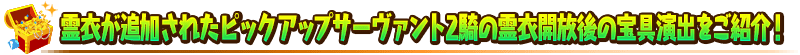 ピックアップサーヴァント2騎の宝具演出は、一部端末でのフルスクリーン表示に対応しております。