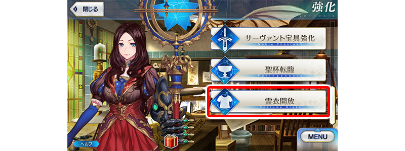 ※「霊衣開放」後は自動でバトルキャラやアイコンが切り替わります。「霊衣開放」前の状態に戻したい場合や、他の再臨段階に変更したい場合は、サーヴァント詳細画面より変更することができます。 ※「霊衣開放」をおこなってもクラスやパラメータなどに変化はありません。