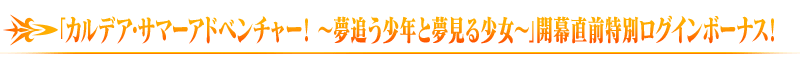 期間限定イベント「カルデア・サマーアドベンチャー! ~夢追う少年と夢見る少女~」の開催を記念した特別ログインボーナスを実施いたします。