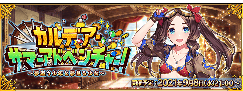 2021年9月8日(水)に開催を予定しております、期間限定イベント「カルデア・サマーアドベンチャー! ~夢追う少年と夢見る少女~」にあわせまして、『「カルデア・サマーアドベンチャー! ~夢追う少年と夢見る少女~」開幕直前キャンペーン』を開催いたします!