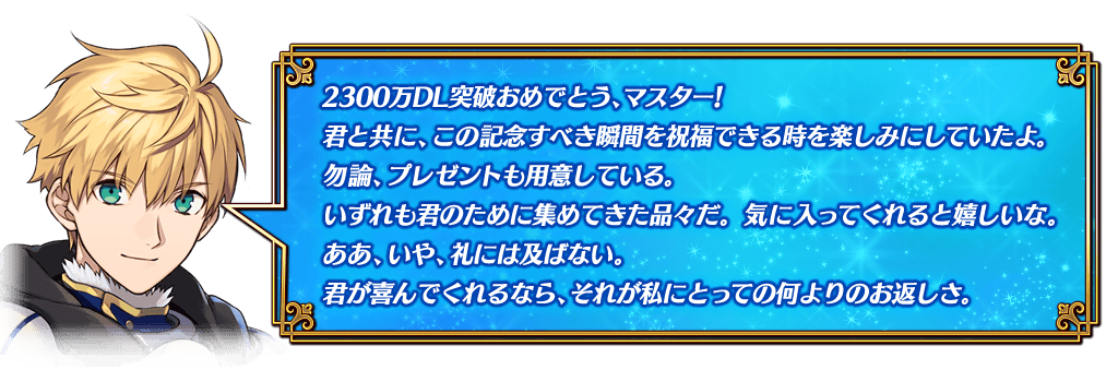 2300万DL突破を記念した特別なログインボーナスを実施いたします。
