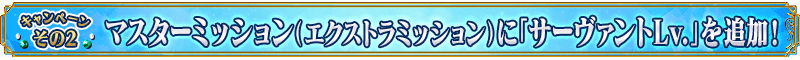 マスターミッション(エクストラミッション)に、サーヴァントを強化し到達したLv.によって達成できる新たなミッションを追加いたします。