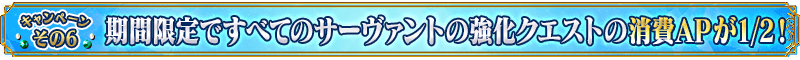 開催期間中、すべてのサーヴァント強化クエストの消費APが1/2になります!
