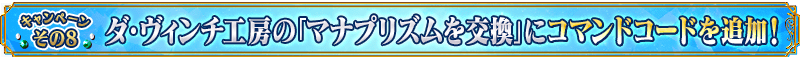 「2300万DL突破キャンペーン」開催を記念して、ダ・ヴィンチ工房の「マナプリズムを交換」に、下記のコマンドコードを恒常追加いたします。
