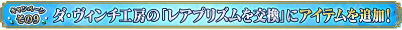「2300万DL突破キャンペーン」開催を記念して、ダ・ヴィンチ工房の「レアプリズムを交換」に、『マナプリズム交換「カルデア・ディナータイム」開放権』を恒常追加いたします。