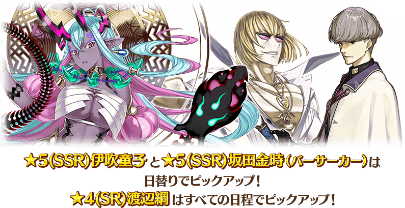 「★5(SSR)伊吹童子」「★4(SR)渡辺綱」の宝具演出は、一部端末でのフルスクリーン表示に対応しております。