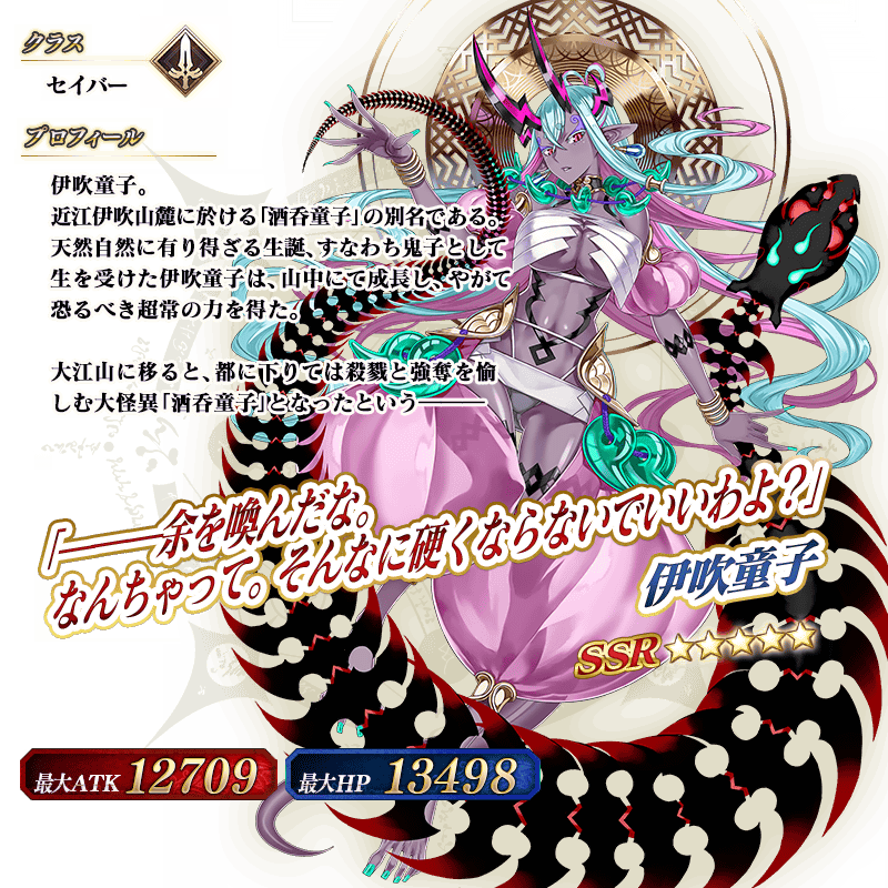 ※上記の「★5(SSR)伊吹童子」のイラストは霊基再臨第3段階のものです。