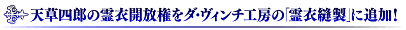 ※「★5(SSR)天草四郎」を未所持の場合、霊衣開放権は入手可能となりますが、霊衣開放はおこなえませんのでご注意ください。