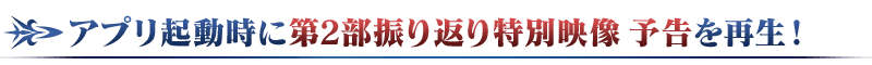 「第2部振り返り特別映像 予告」には、第2部 第1章から第5章までのネタバレを一部含みます。第2部 第5章まで未クリアでプレイされる方につきましては、ネタバレを一部含むことをご了承いただきますようお願いいたします。