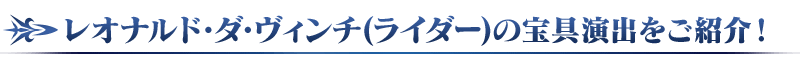本召喚にてピックアップされている、「★5(SSR)レオナルド・ダ・ヴィンチ(ライダー)」の宝具演出を紹介いたします!