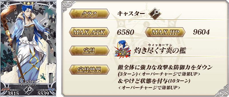 ※上記の「★3(R)クー・フーリン(キャスター)」のセイントグラフは霊基再臨第2段階のものです。