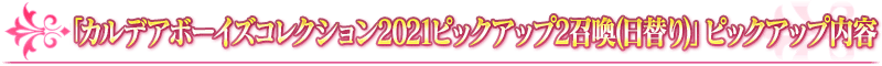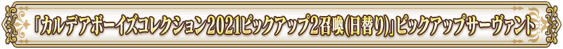 | 「カルデアボーイズコレクション2021ピックアップ2召喚(日替り)」開催期間 |