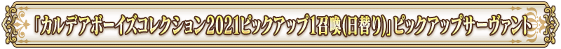 | 「カルデアボーイズコレクション2021ピックアップ1召喚(日替り)」開催期間 |