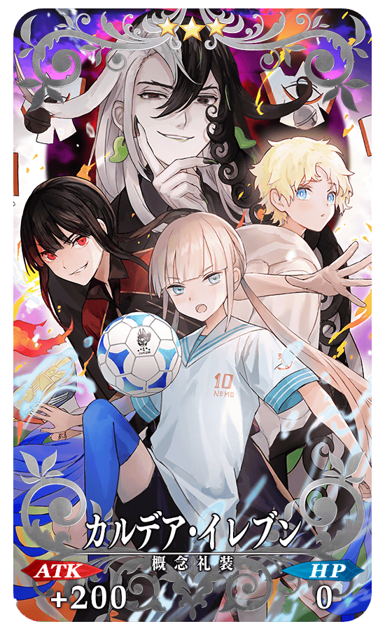 11回召喚では★4(SR)以上1枚確定と★3(R)以上のサーヴァント1騎確定! ※★4(SR)以上確定にはサーヴァントと概念礼装が含まれます。 ※本ページの画像はすべて開発中のものです。実際の画像とは異なる場合があります。