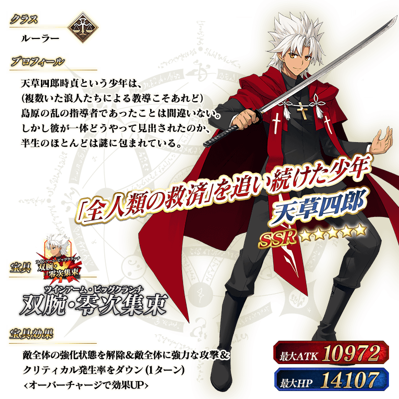 ※上記の「★5(SSR)天草四郎」のイラストは霊基再臨第2段階のものです。
