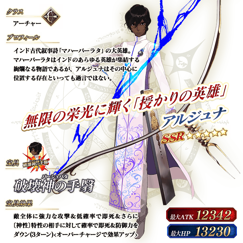 ※上記の「★5(SSR)アルジュナ」のイラストは霊基再臨第2段階のものです。