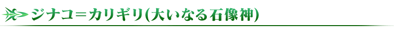 ※上記の「★5(SSR)ジナコ=カリギリ(大いなる石像神)」のイラストは霊基再臨第2段階のものです。 ※「★5(SSR)大いなる石像神」を霊基再臨第2段階にすることで名称が「★5(SSR)ジナコ=カリギリ」に変化します。