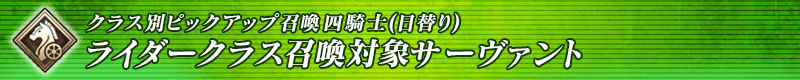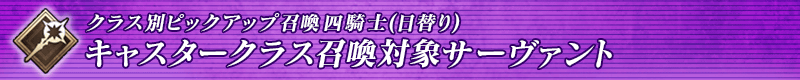 「クラス別ピックアップ召喚(日替り)」は、召喚されるサーヴァントが日替りでピックアップされるクラスのみとなる、クラス確定召喚となります。