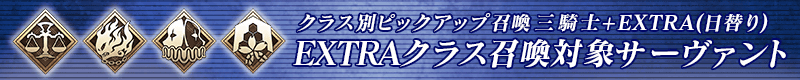 | クラス別ピックアップ召喚 三騎士+EXTRA(日替り) |