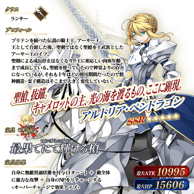 - セイバークラスの召喚対象★5(SSR)サーヴァントプロフィール