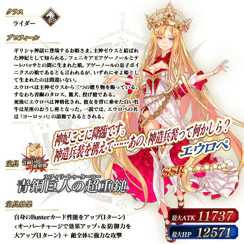 - ライダークラスの召喚対象★5(SSR)サーヴァントプロフィール