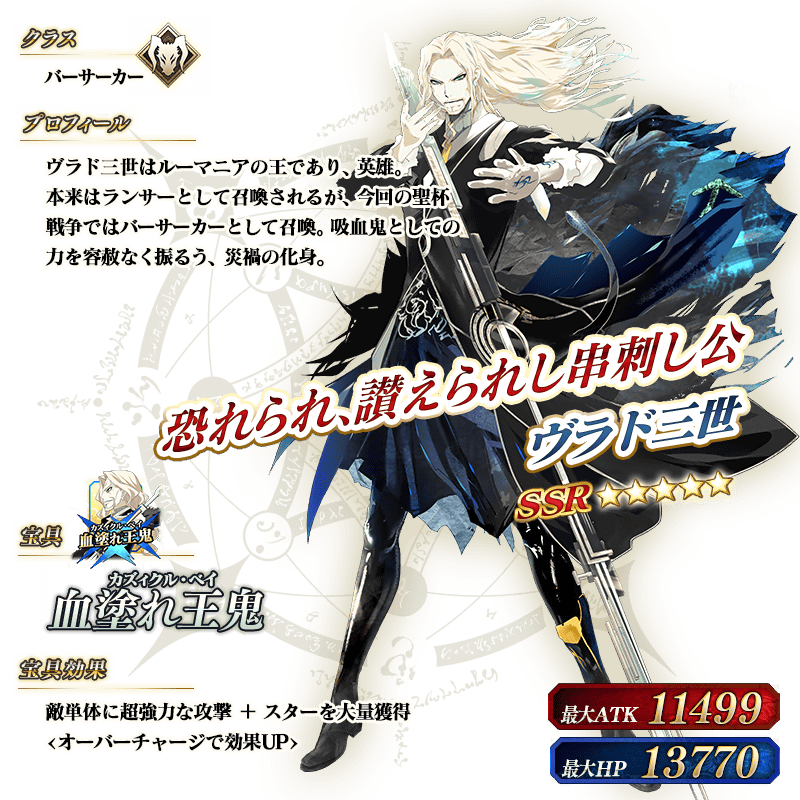 ※上記の「★5(SSR)ヴラド三世(バーサーカー)」のイラストは霊基再臨第2段階のものです。