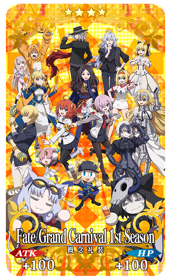 カルデアゲートにて、下記の期間中に出現する『「Fate/Grand Carnival 1st Season」Blu-ray&DVD発売記念クエスト』をクリアして、クエスト限定の概念礼装「★4(SR)Fate/Grand Carnival 1st Season」をゲットしましょう!