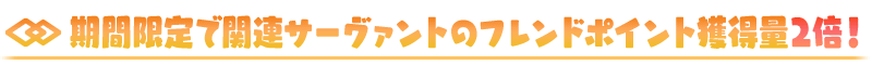※フレンドではないマスターもフレンドポイント獲得量2倍の対象となります。 ※ゲストサーヴァントの場合、対象サーヴァントであってもフレンドポイント獲得量2倍の対象外となりますのでご注意ください。