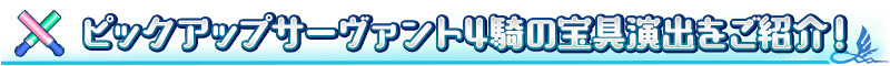本召喚にてピックアップされている、サーヴァント4騎の宝具演出を紹介いたします!