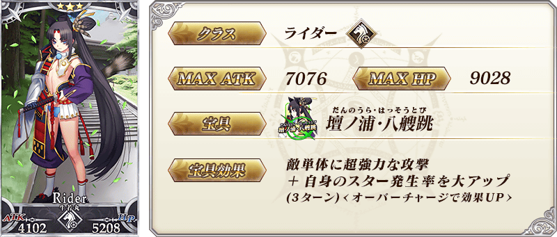 ※上記の「★3(R)牛若丸(ライダー)」のセイントグラフは霊基再臨第2段階のものです。