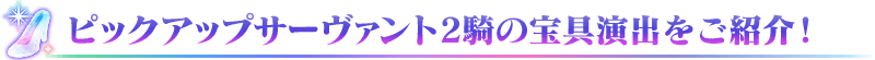 ピックアップサーヴァント2騎の宝具演出は、一部端末でのフルスクリーン表示に対応しております。