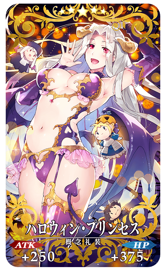 イベントアイテム交換で入手できる2015年~2017年に開催されたハロウィンイベントに登場した限定概念礼装は、期間限定イベント「ハロウィン・ライジング! ~砂塵の女王と暗黒の使徒~」における、イベントボーナスはありませんので、ご注意ください。
